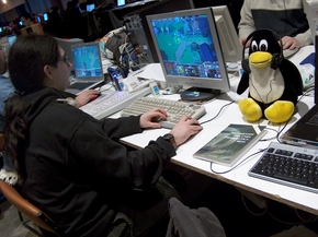 O pingüín é o rei entre a variada fauna que vive esta fin de semana no compostelán Pazo de Congresos. Estamos en escenario claramente entregado ás promesas do outro mundo, mellor, que abrolla co software libre. E se de código aberto falamos, a mascota oficial do kernel de Linux, vén de cumprir de dez anos de idade erixíndose en referencia visual para os practicantes da relixión da alternativa informática. Di a lenda?, que ao Linus Torvalds lle trabara un pingüin cando era cativo, traban os pingüíns? En todo caso, velaí: Tux.