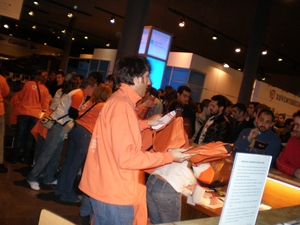 Madrugaron os ciber romeiros para a peregrinaxe até o Pazo de Congresos de Santiago. Hai banda larga abondo para repartir entre todos, pero 1.500 afeccionados ás novas tecnoloxías tiñan posto o espertador para erguérense cedo este venres.