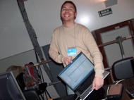 "En galego, por que non!". Xa foi lema da anterior edición de XuventudeGalizaNet e está subliñado outra vez en 2007. Aquí vemos aos máis rápidos en montar os equipos de volta e preparados xa para a conferencia de apertura da ciberfesta.