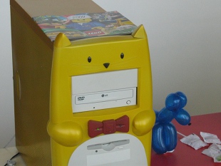 Neste encontro informático podemos ver dous tipos de 'modding' ou 'tuning' de computadores: os neóns e tubos estraños da Intranet, ou esta CPU personalizada para os máis pequenos que se achegan á Extranet a aprender as cousas da informática.