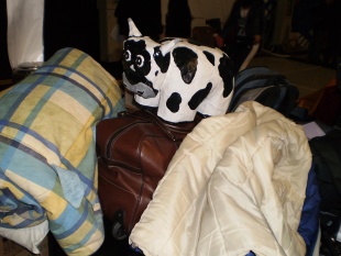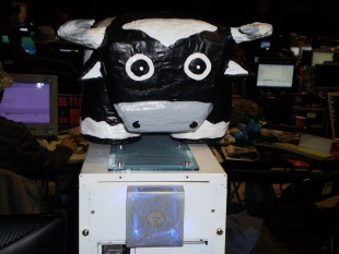 Seica a vaca é un dos animais de moda en XGN09. Velaí teñen a esta, que atopamos ceiba nun corredor, empoleirada nun computador e apuntando a cornamenta cara á cámara.