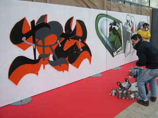 Como xa é tradición no XGN, a entrada do recinto -desta volta o Multiusos Fontes do Sar- acaba decorada por artistas grafiteiros con moito xeito.