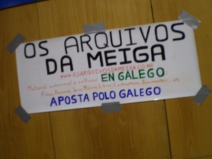 Nunha parede do Multiusos damos con este avisto que ven vostedes na imaxe. Cóntanos do espazo web Os arquivos da meiga. Caldeirada de arquivos para todos os gustos. E o lema: Aposta polo galego!