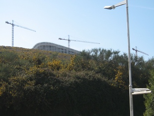 A especial situación xeográfica do Multiusos do Sar permítenos ver, moi de preto, esa estrutura da que tantas veces se fala: a Cidade da Cultura, no Monte Gaiás. Iso se saímos ao exterior, claro.