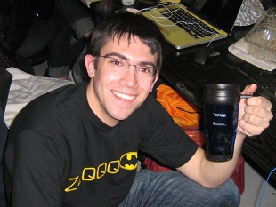 Todas as persoas que participan nesta edición do Xuventude Galiza Net son agasalladas con diversos utensilios para afrontar estes tres días de fervente actividade. Un exemplo é esta cunca-termo, para conservar o café -ou a beberaxe que sexa- na súa temperatura xusta. Brindas?